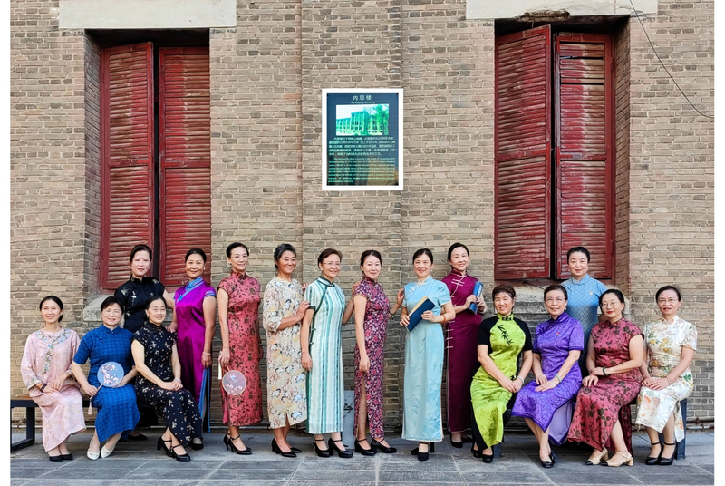 老师们身着各式旗袍,或典雅端庄,或婉约秀丽,仿佛一幅流动的东方画卷。她们在古朴建筑之间缓步而行,参观了学校旧址的历史展览,聆听了建校初期的办学故事,追忆先贤的教育情怀。在讲解员的带领下,老师们了解了学校90年的发展源流,九十载春秋更迭,育人初心始终如一。旗袍协会功能型党支部还举行了特殊的主题党日活动,以实际行动表达“不忘初心、牢记使命”的信念与担当。